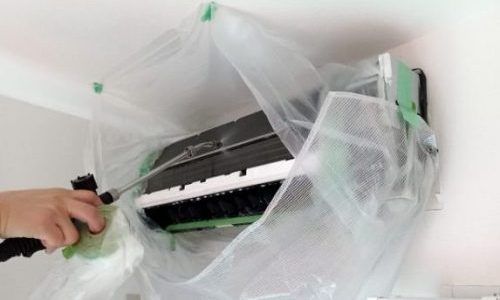 →脚立を立てれるスぺースが問題ありません。エアコン周りやテレビに養生して水がかからいように保護してから作業します。